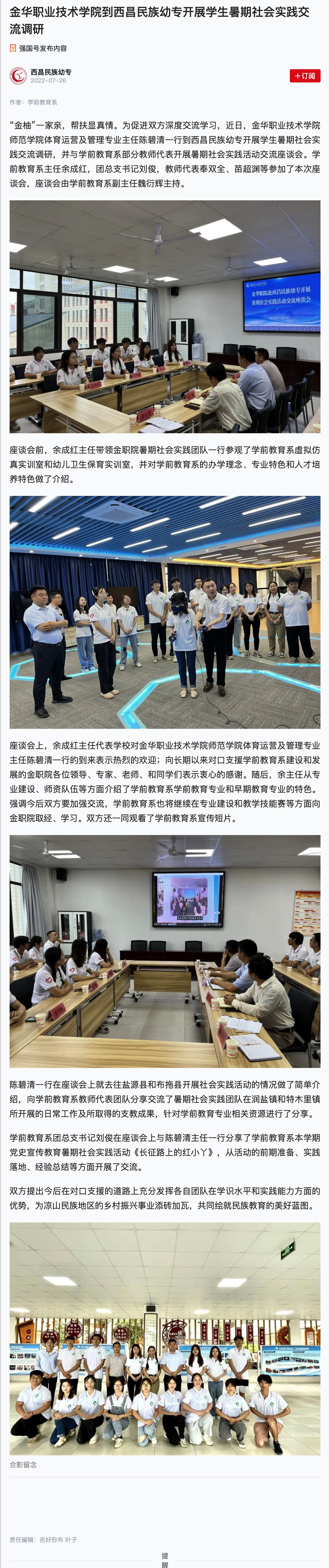 学习强国:金华职业技术学院到西昌民族幼专开展学生暑期社会实践交流调研