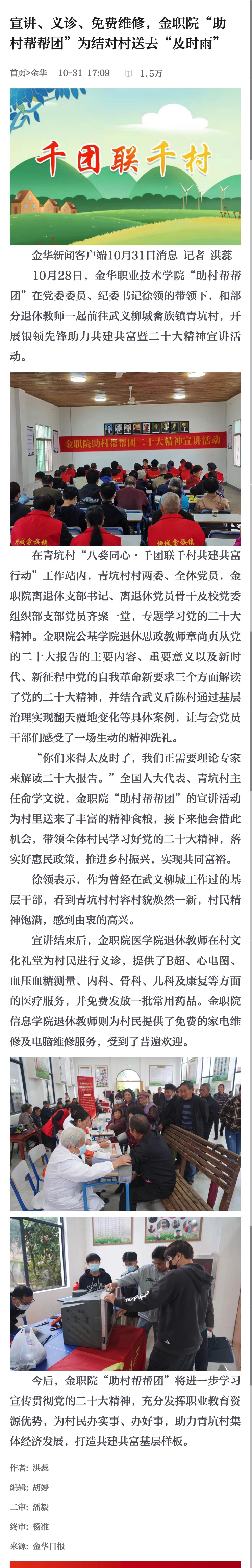 金华新闻客户端:宣讲、义诊、免费维修,金职院“助村帮帮团”为结对村送去“及时雨”