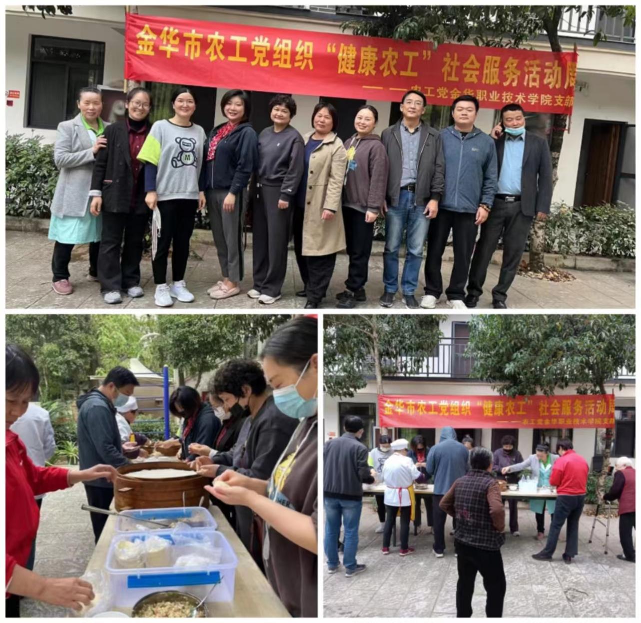 据悉,橄榄山老人公寓位于学校西门的金帆街上,是农工党金职院支部的社会服务点,支部党员们经常给老人们送去服务和温暖。重阳节送医送药义诊、端午节送香囊享安康、健康服务周包饺子馄饨……已成为该支部党员服务常规动作。