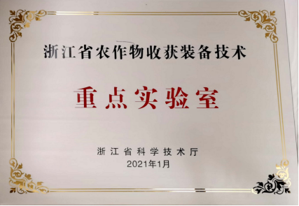 获评浙江省农作物收获装备技术重点实验室