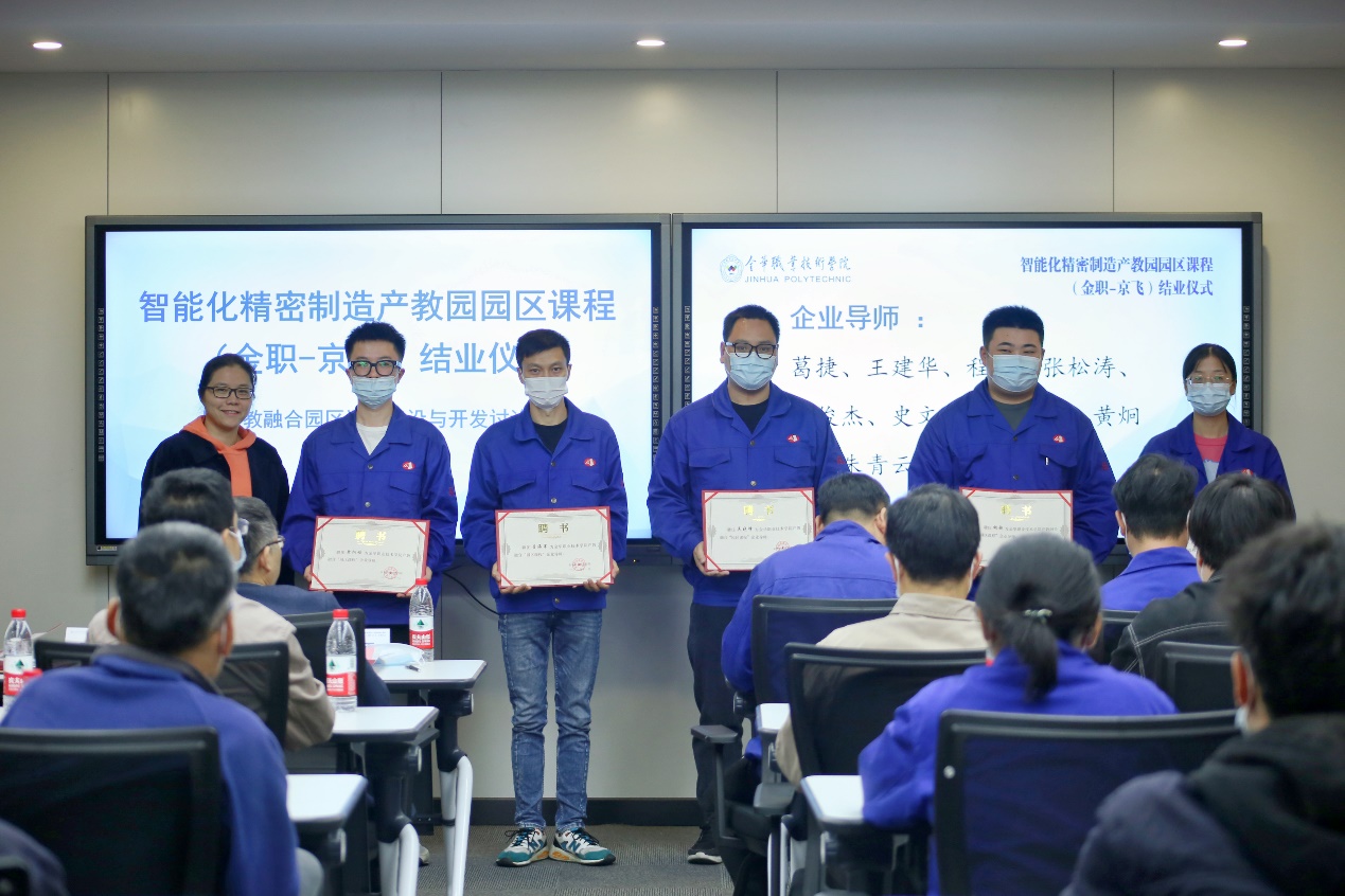 11月4日,38名机电201、202班的学生结束在智能化精密制造产教园区实体公司浙江京飞航空制造有限公司“精密制造加工综合项目”课程的学习。校企双方在园区举行了隆重简朴的课程结业仪式,企业负责人、企业各部门主管和一线师傅代表、学校教务处、机电工程学院相关负责人、专业课程师生一同参加,以“即产即学、即学即练”为核心的“园区课程”教学形态在智能化精密制造产教园走深入实。