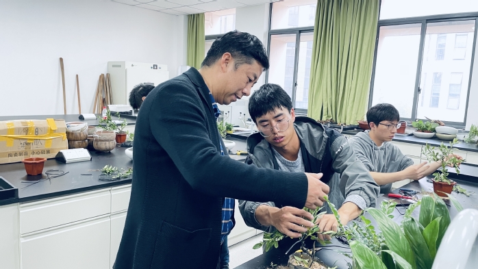 进一步提升学生专业技能,提升学生就业创业竞争力,近日,农学院邀请了2019届园艺专业毕业生凌峰、2020届园艺专业毕业生董方豪,开展了组合盆栽技艺、盆景制作技艺分享活动。农学院党委负责人、园艺专业负责人和专业教师参与指导,多名学习和实践技能突出的大一大二学生参加活动,并体验作品制作过程。