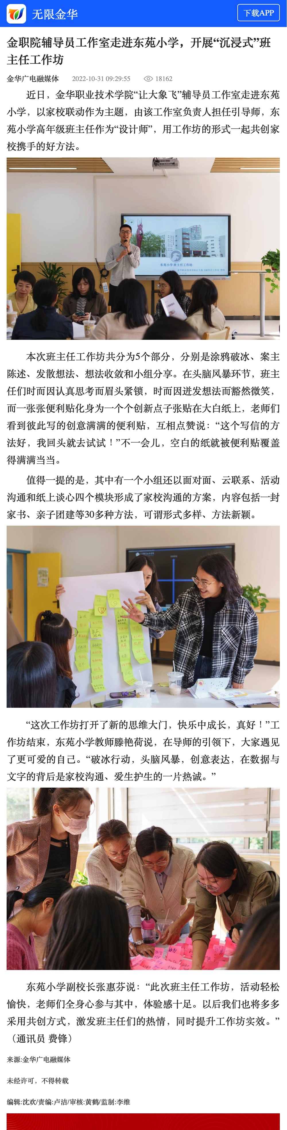 无限金华:金职院辅导员工作室走进东苑小学,开展“沉浸式”班主任工作坊