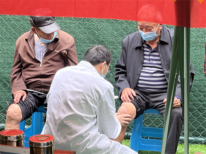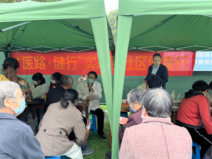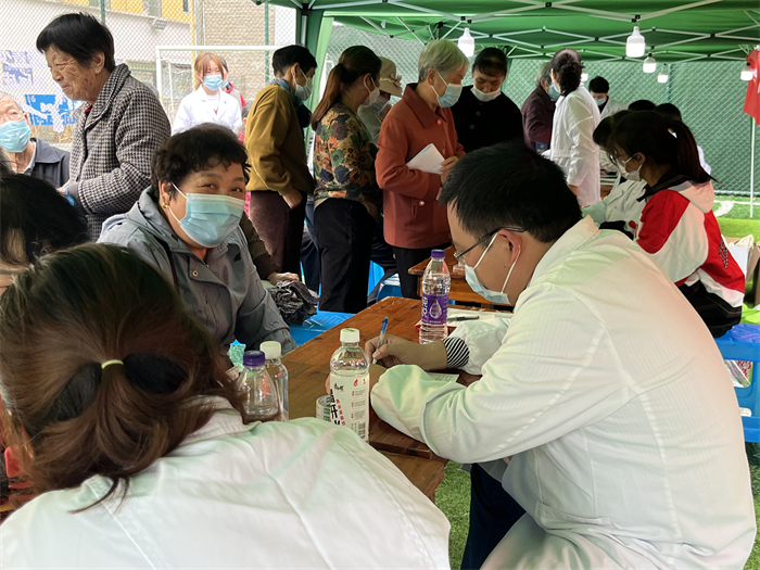 活动当天,在街道党群服务中心前,师生志愿者们搭起了一顶顶帐篷,准备好各类诊疗仪器,作为临时便民服务点,为前来问诊的居民们进行免费体检,体检项目包括内科、康复科、中医科、五官科等。