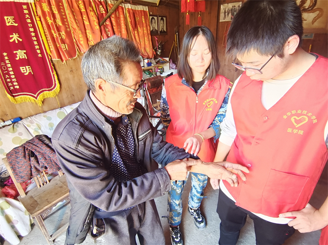 “我们老年人腿脚不好,平常去医院也挺麻烦。今天,感谢有金职院医学院的老师和同学们上门给我们免费体检和送医送药,真的是方便多了!”家住武义县壶山街道的张奶奶对师生志愿者们的细心服务赞不绝口。