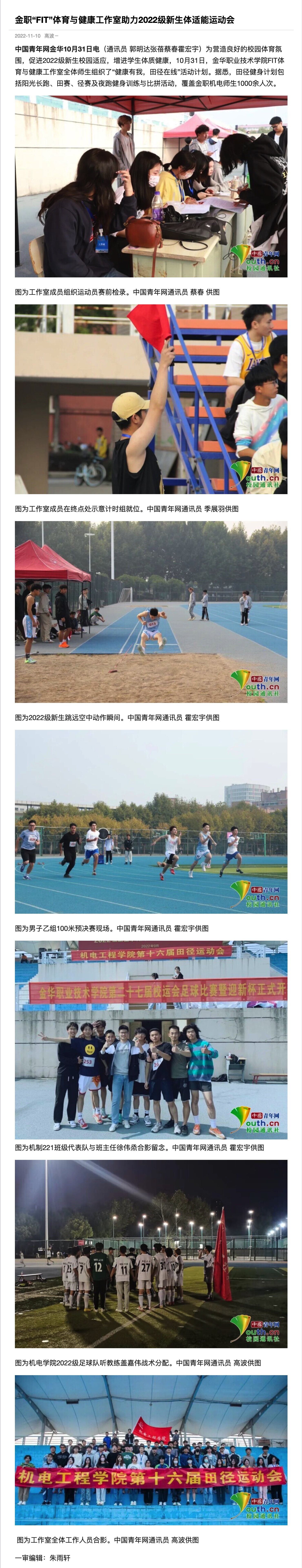 中国青年网金华:金职“FIT”体育与健康工作室助力2022级新生体适能运动会