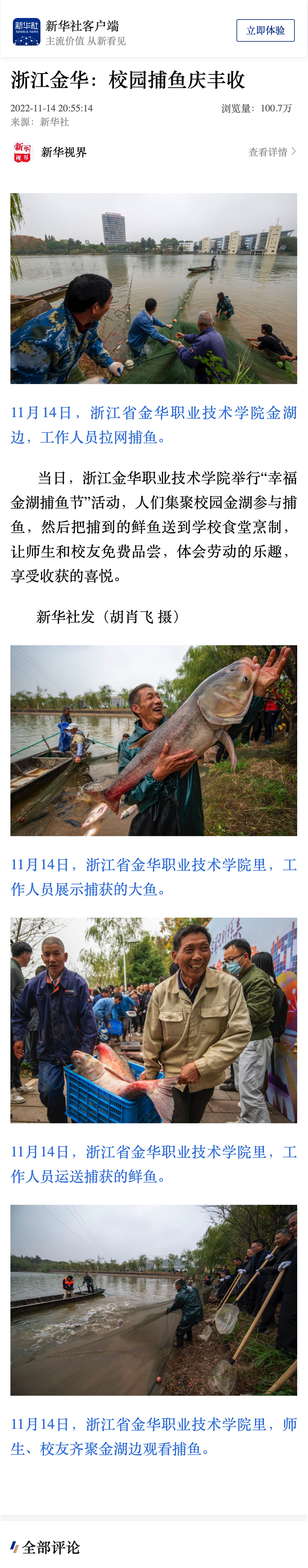 新华社客户端:浙江金华:校园捕鱼庆丰收