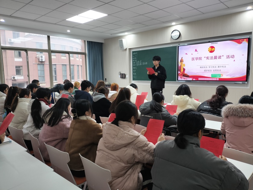 为认真学习贯彻党的二十大精神,引导学生学习宣传宪法、弘扬宪法精神、维护宪法权威,进一步增强学生的法律意识,12月2日早自习期间,医学院组织各班开展了“宪法晨读”活动,共有900多名2022级学生参与其中。