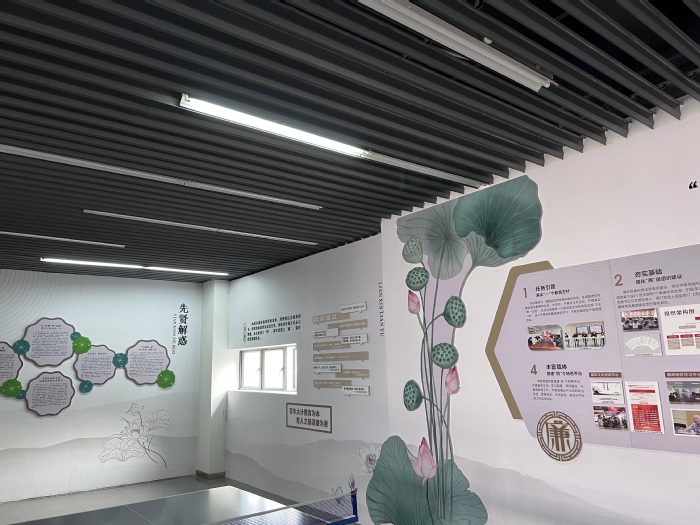 校外组织廉政教育,校内营造廉洁环境。前不久,医学院以仿真医院六楼墙面改造为契机,努力打造“上善若水 琴韵莲心”廉政文化氛围,以廉政文化建设助推全院党风廉政建设工作。廉政文化墙以创建“一二三四”廉政建设为设计体系,内容包括落实“一”个教育方针、强化“两”级组织建设、打造“三”支骨干队伍、搭建“四”个活动平台,通过加大廉政典型宣传,引导广大党员师生忠诚履责、勇于担当、守正创新、廉洁自律,有力推进各项工作开展。