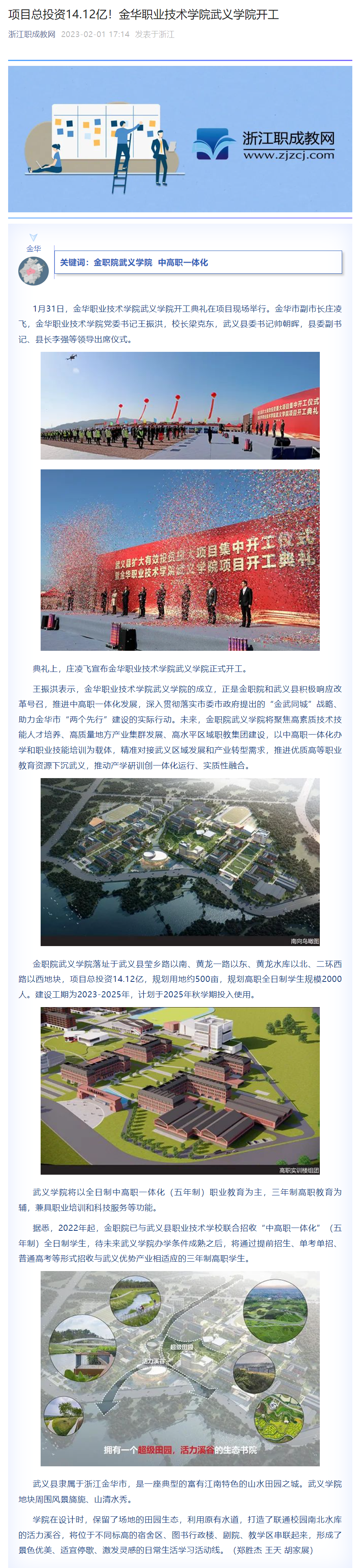 浙江职成教网:项目总投资14.12亿!金华职业技术学院武义学院开工
