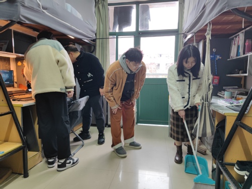 开学大扫除,“净”启新学期,同学们由“心”开始,从“细”着手,对寝室各个角落进行了全面细致的清扫。学工办老师与寝管中心学生干事在寝室卫生检查的过程中排查安全隐患,着重向同学们强调了禁止违规电器的使用、杜绝私拉乱接的现象、严禁乱扔烟蒂的行为,共同爱护寝室“小家”。