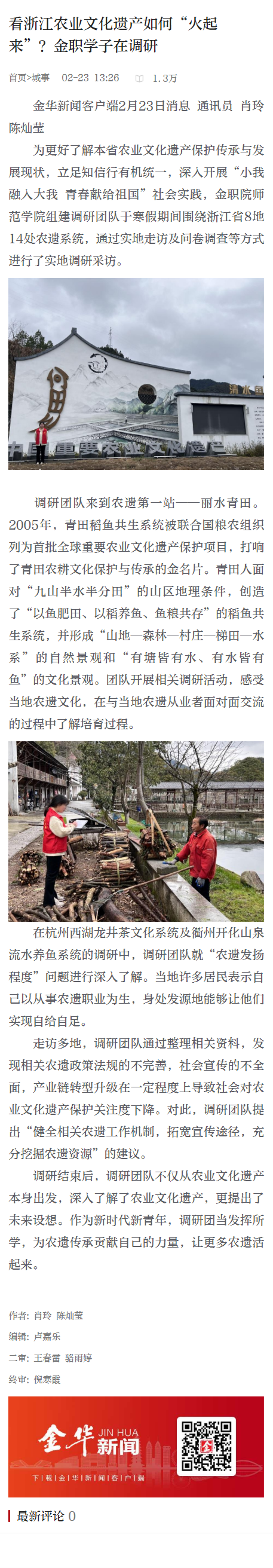 金华新闻客户端:看浙江农业文化遗产如何“火起来”?金职学子在调研