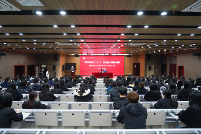 3月5日,正值第60个学雷锋纪念日,校长梁克东为全体金职学子上了一堂题为“学思践悟二十大,砥砺奋进新时代”的“开学第一课”。130余名同学在大学生活动中心109教室现场聆听,其余在校生通过直播,在云端收听收看。