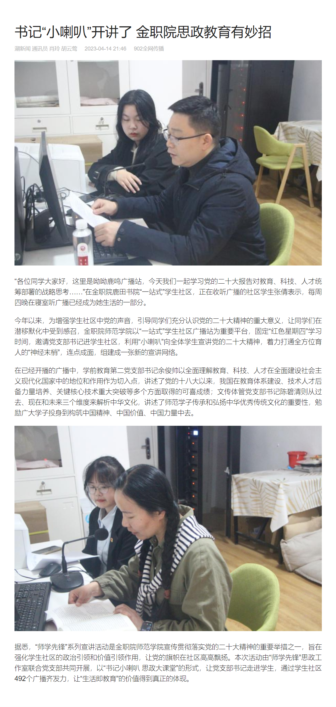 潮新闻:书记“小喇叭”开讲了 金职院思政教育有妙招