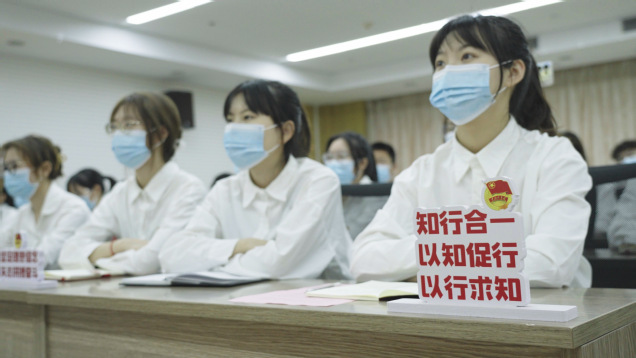 双方的青年骨干还开展了“青年大讲堂”主题团课学习,医学院团委负责人以“学思践悟二十大,砥砺青春新征程”为主题开展了党的二十大精神和团史知识的宣讲授课。课后,医学院学员与中心医院临床护理班学生进行交流互学,了解了在医护岗位上前辈们的职责担当,感受到了他们工作中的高效与细致,让各位学员对自己以后要从事的岗位有了更为深刻的理解。