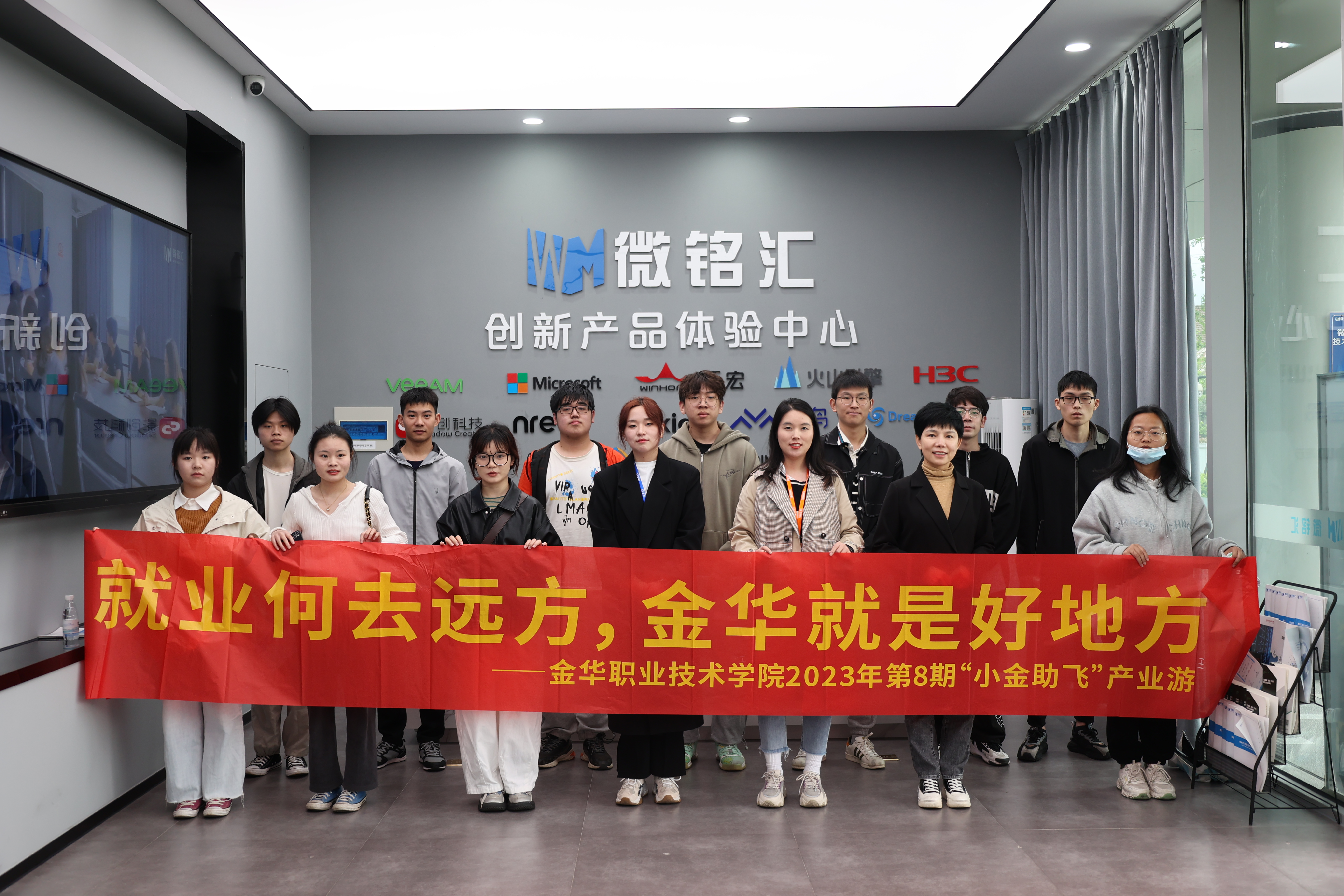 “各位同学大家好,微铭汇目前拥有 2000多平方米的办公场地,430多平方米的创新产品体验中心,创新产品解决方案主要有数字孪生、元宇宙、全息影像、XR扩展现实、增强现实技术开发等。”近期,为推进2023届毕业生就业工作,激发电子信息类学生“留金”热情,信息工程学院组织计算机应用技术、物联网技术等专业11名应届毕业生前往微铭汇信息技术有限公司(以下简称“微铭汇”)参加企业产业游。