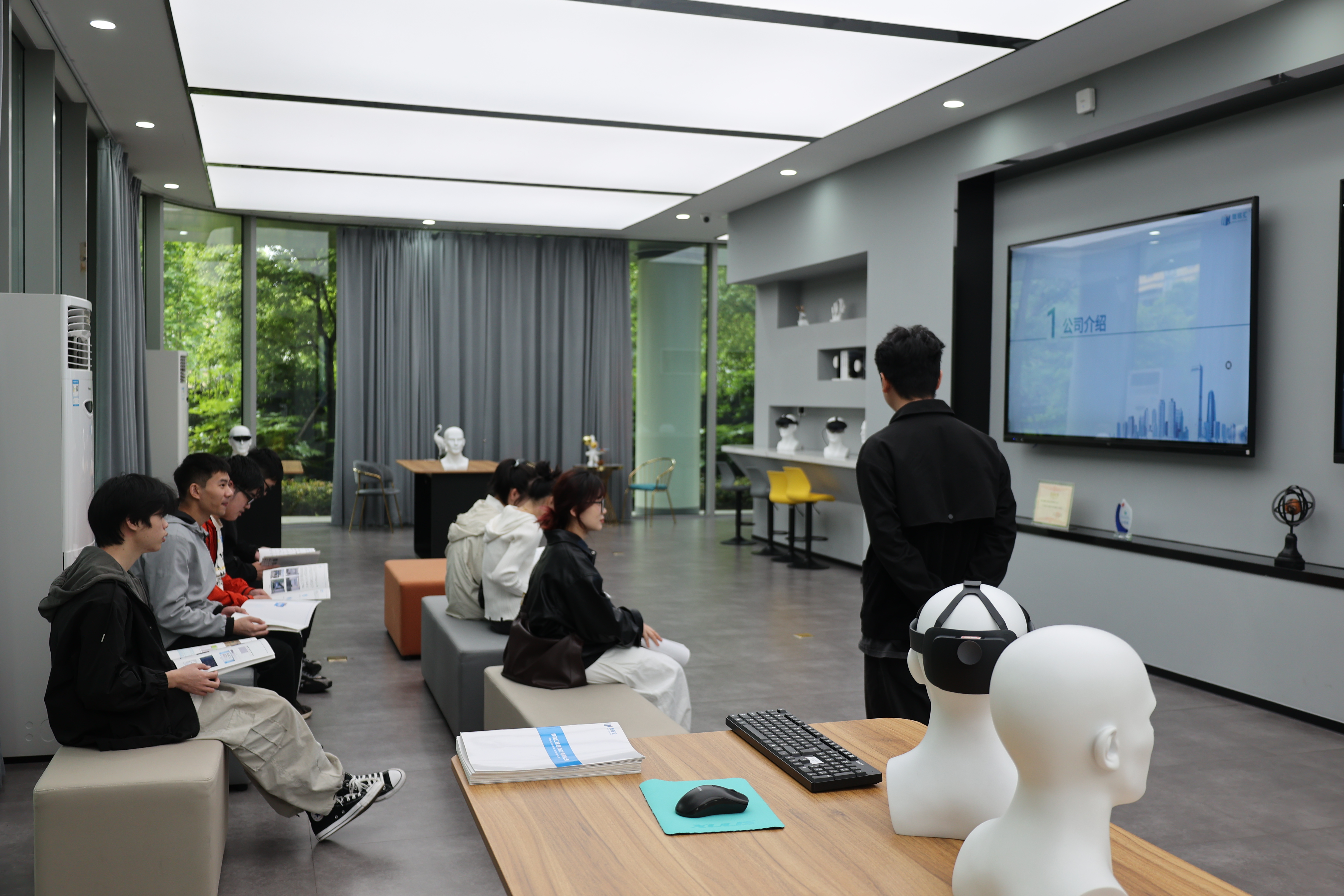 在本次产业游过程中,微铭汇技术总监樊永首先向到场的同学们展示了VR眼罩、游戏操纵手柄等一系列公司自主开发产品;随后,微铭汇人事招聘工作人员围绕公司发展、产品信息、岗位内容等内容做了一次详细的介绍,并围绕同学们较为关注的问题,如薪资待遇、晋升路径等进行了解答。同学们在体验中对微铭汇有了更深次的了解,都对其比较感兴趣,纷纷留下了个人的简历,并约定了后续面试的时间。
