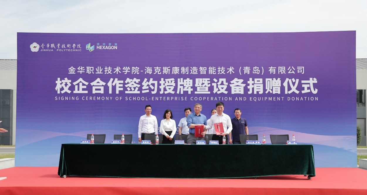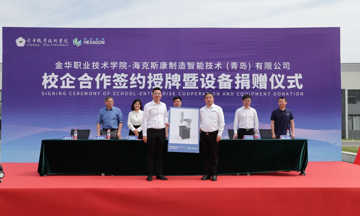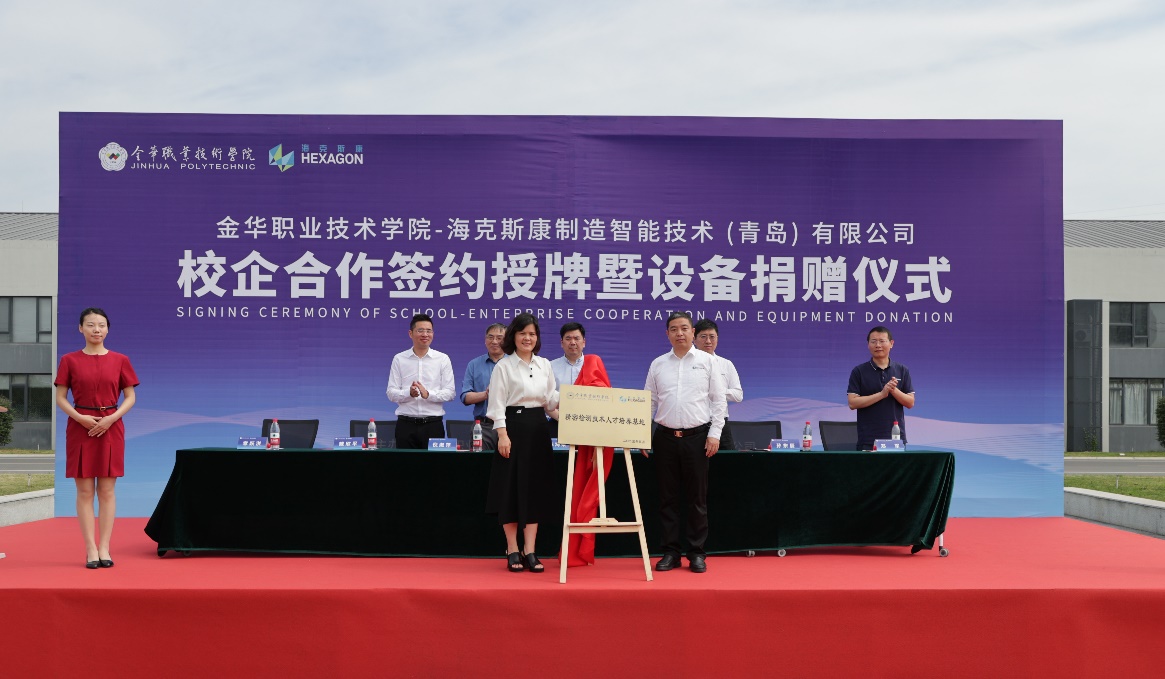 5月16日上午,金华职业技术学院与海克斯康制造智能技术(青岛)有限公司在智能化精密制造产教园举行校企合作签约授牌暨捐赠仪式。副校长陈海荣,教务处、校企合作处、机电工程学院相关负责人,海克斯康华东事业群KA事业部总经理孙江召、大中华区教育生态事业部副总经理孙东辰、海克斯康浙中地区智能制造生态合作企业负责人等70余人参加。