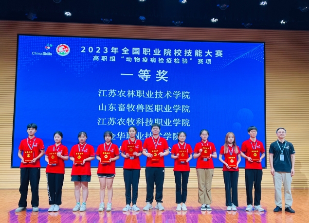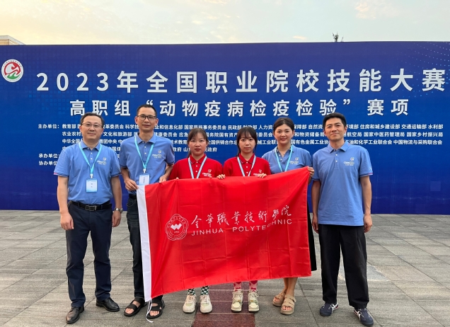 7月12至14日,2023年全国职业院校技能大赛高职组“动物疫病检疫检验”赛项在山东畜牧兽医职业学院举行,共有来自全国高职院校的54支代表队的108名选手同场竞技。经过长达3天的激烈角逐,由金华职业技术学院农学院张超颖、姜正前两位教师指导的夏羽欣、曹钰娇两位同学参赛的队伍,凭借扎实的专业知识和实践技能获大赛一等奖!