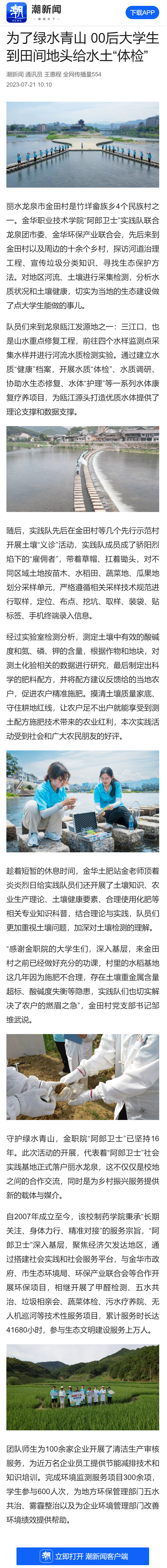 潮新闻客户端:为了绿水青山 00后大学生到田间地头给水土“体检”