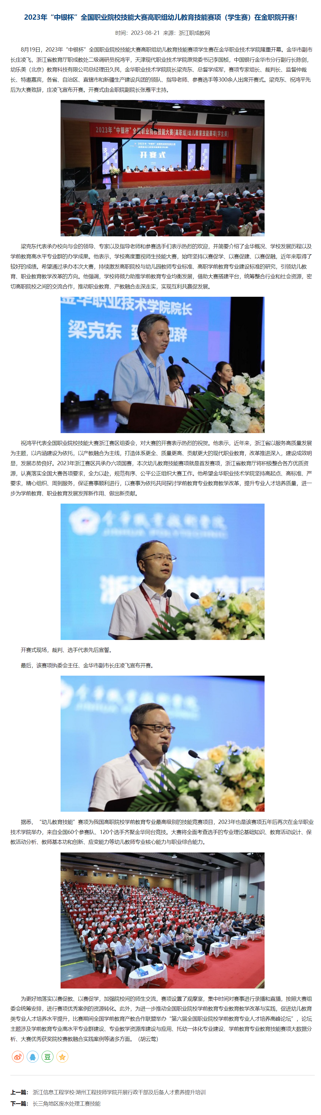 浙江职成教网:2023年“中银杯”全国职业院校技能大赛高职组幼儿教育技能赛项(学生赛)在金职院开赛!