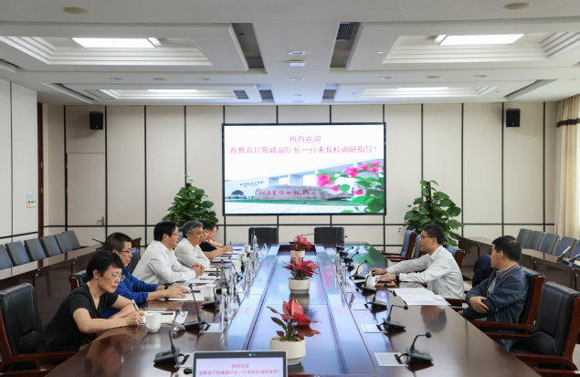 10月14日上午,浙江省教育厅党组成员、副厅长陈峰,省教育厅职成教处处长陈达一行来金职院调研指导。金职院党委书记王振洪、校长梁克东、办公室主任刘鲁平,相关职能部门负责人参加调研。