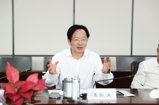 王振洪对陈峰一行的到来表示欢迎,对省教育厅一直以来对学校高质量发展的高度重视和支持表示衷心的感谢,并简要介绍了学校的发展历程、办学特色和取得成绩等情况。他表示,学校作为地方高职院校,始终立足金华、放眼全国,紧紧围绕本轮“双高”建设终期验收、职业本科教育申办等中心工作,坚持以产教融合为主线,肩负起服务地方经济发展的职能和使命,与地方经济社会高质量发展同频共振,努力为省市两级共同富裕先行示范建设提供强力支撑,为中国式职业教育现代化贡献金职经验和范本。
