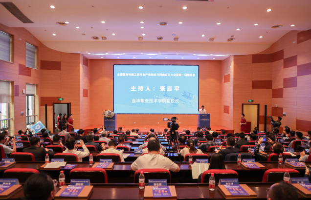 10月14日,全国智能电器工具行业产教融合共同体成立大会暨第一届理事会在金华职业技术学院召开。教育部职业教育与成人教育司职业院校发展处处长任占营,金华市人民政府副市长章旭升,浙江省教育厅职成教处处长陈达,中国电器工业协会秘书长白文波,中国出入境检验检疫协会副会长车文毅,中国机械工业教育发展中心主任陈晓明,上海电动工具研究所(集团)有限公司党委书记刘建华,金华职业技术学院党委书记王振洪等出席会议。来自全国各地70余家企业、院校、行业协会的110多名代表参会。会议由金职院副校长张雁平主持。