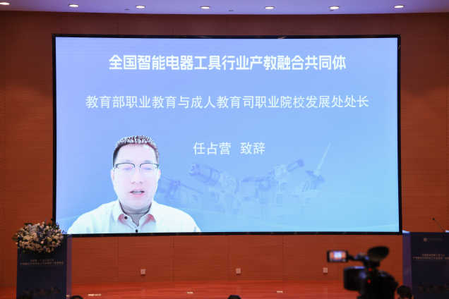 任占营在线上致辞中表示,共同体是深化职业教育产教融合的创新举措,也是推进产教深度融合的创新组织形态。在建设共同体过程中需要认真处理好三组关系。第一组关系是要统筹破与立,当前产教融合面临着产教“融而不合”、校企“合而不深”的窘境。为破解这个难题,教育部做出“一体两翼”“五重点”等一系列具体安排、重点部署,对新时期职业教育体系建设改革做了顶层设计和战略规划。第二组关系是要洞察时与势。智能电器工具作为重要的智能消费产品,在我国电器工具行业占有重要的地位,发展态势良好,发展前景广阔,急需自主培养一批高素质智能制造人才,助力新一代智能技术与制造业深度融合。第三组关系是要把握制与治的关系。制度是治理的依据,而治理是制度的实现,二者实现共同构成了一个统一的有机整体。共同体的成立只是开始,接下来要在理念、举措、成效三方面着力,做好做强共同体的建设工作。
