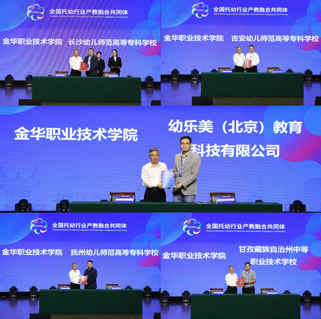 会上,金华职业技术学院与幼乐美(北京)教育科技有限公司、长沙幼儿师范高等专科学校、吉安幼儿师范高等专科学校、抚州幼儿师范高等专科学校、甘孜藏族自治州中等职业技术学校签署了战略合作协议。