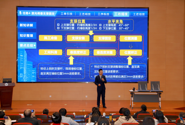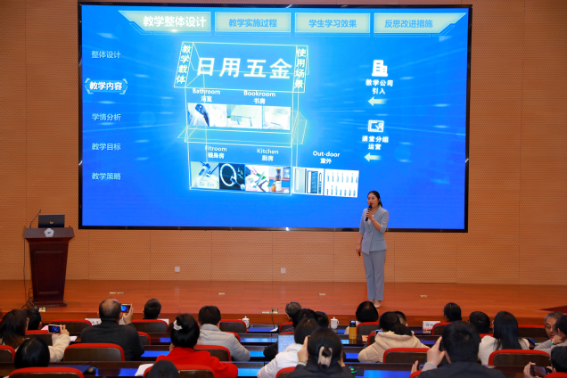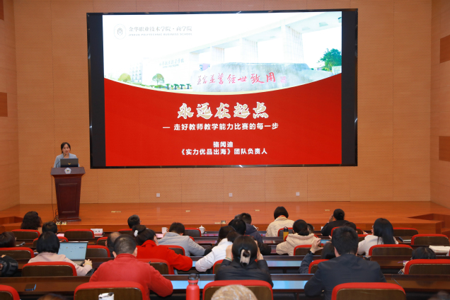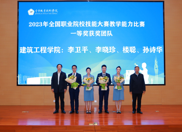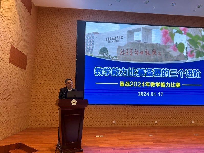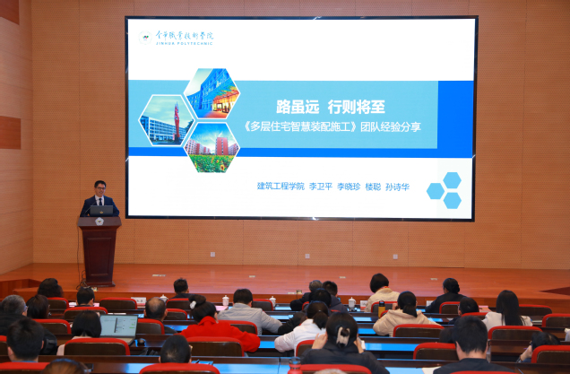 随后,2023年国赛获奖团队代表作了教学展示及参赛经验分享。其中,商学团队方佳琳进行《实力优品出海》说实施报告展示;建工团队楼聪进行《激光调垂支撑固定》无生教学片段展示;信息团队陈群挺、建工团队李卫平、商学团队骆闻迪先后以“改革为基、勤奋为径、协作致远-教学能力比赛四年参赛体会”“路虽远、行则将至-团队经验分享”“永远在起点-走好教师教学能力比赛的每一步”为题目作了参赛经验分享。团队代表还原比赛现场,传授备赛心得、比赛经验,为2024年参赛团队提供了宝贵的学习机会。