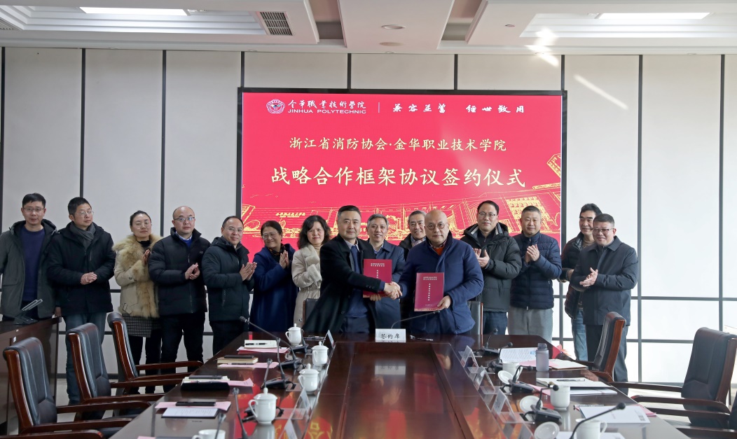 为提升应急安全科教园(金华市应急管理学院)社会服务能力,充分发挥校行企优势,加强合作力度、深化产教融合。1月24日下午,学校与浙江省消防协会签署校企战略合作框架协议,省消防协会常务副会长徐荣敏、副会长王文锐、副秘书长马宝平,金职院校长梁克东、副校长董晓晨,教务处、继教处负责人,建筑工程学院相关负责人参加签约仪式。