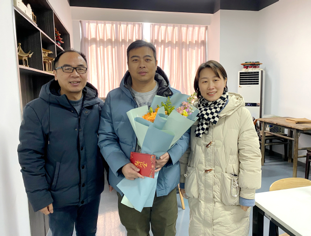 在建筑工程学院,王振洪一行看望慰问了建筑工程技术专业教师田晓军,并与他亲切交谈,了解其工作、生活和身体等情况,代表学校送上新春祝福。他表示,学校的发展离不开广大教职工的辛勤付出,无论何时学校都是教职工最坚实的后盾。田晓军表达了对学校的感谢之情,并表示将立足本职岗位,尽己所能为学校发展做贡献。