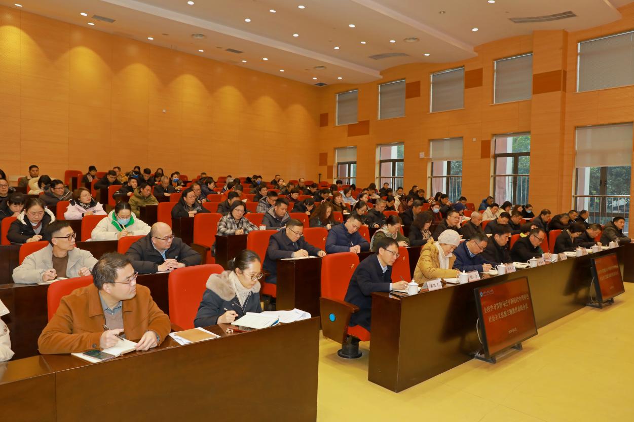 2月7日上午,金职院召开学习贯彻习近平新时代中国特色社会主义思想主题教育总结会议,深入学习贯彻习近平总书记关于主题教育系列重要讲话和指示批示精神,认真贯彻落实中央、省委和市委主题教育总结会议要求,全面总结学校主题教育取得的成效,持续巩固拓展主题教育成果,进一步提振全校党员干部精气神,加快推进学校职业本科建设进程,奋力谱写学校高质量发展新篇章。