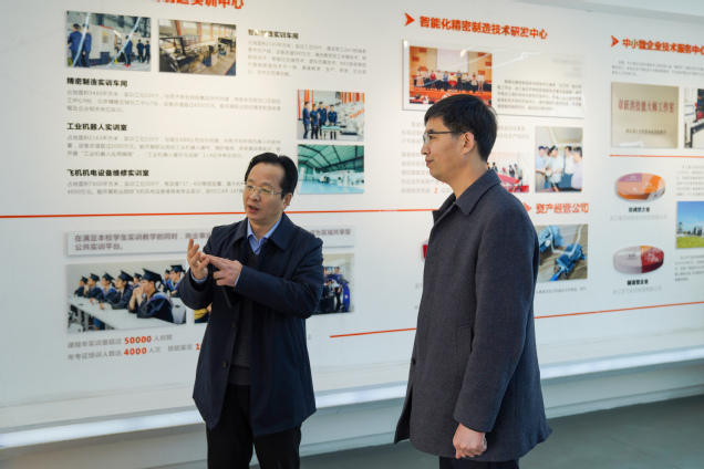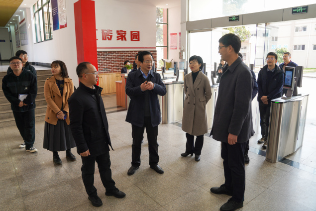 陈钦林一行实地考察了学校智能化精密智造产教园、党群服务中心、建筑工程学院红砖家园和医学院护理党支部书记工作室,对学校浓厚的党建育人氛围表示高度肯定。