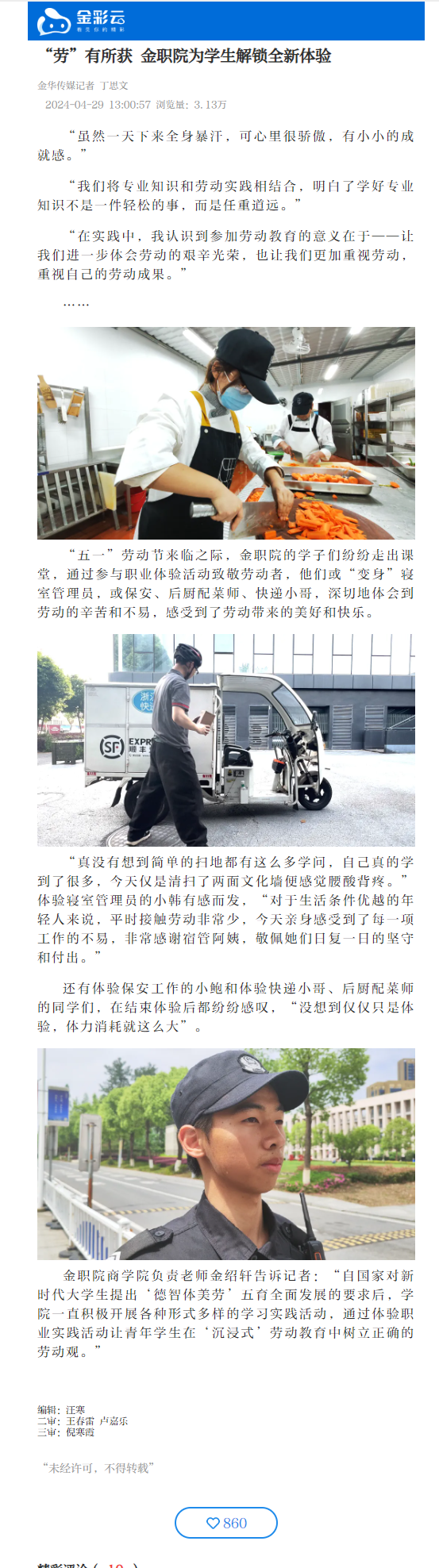 金彩云客户端:“劳”有所获 金职院为学生解锁全新体验