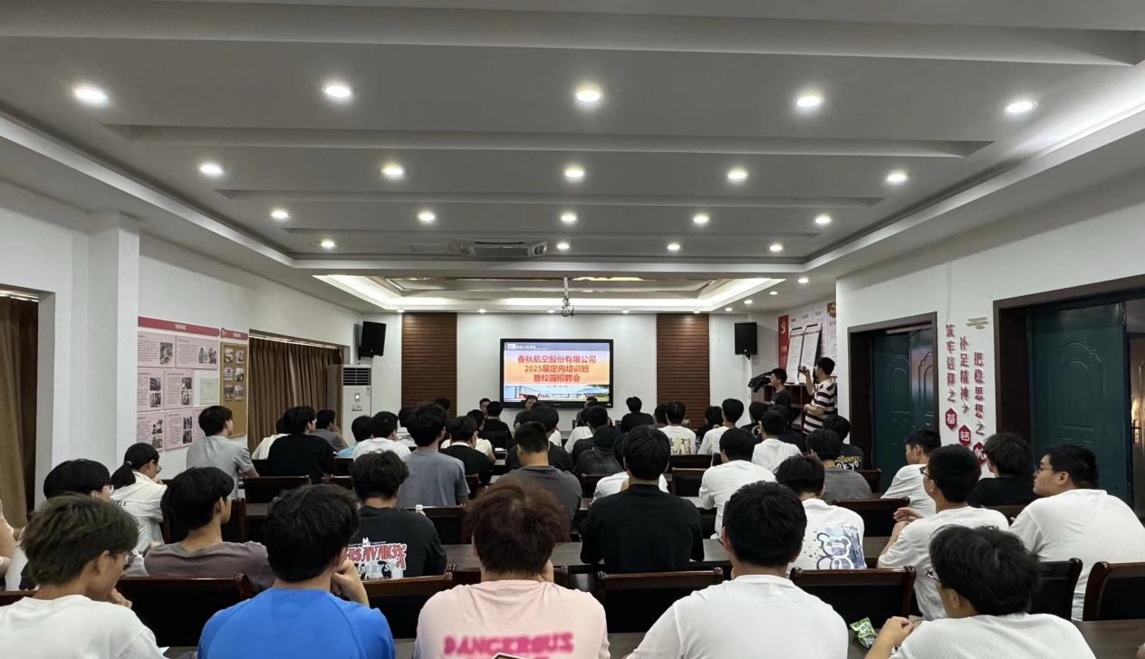 在互动环节中,现场气氛热烈,各位同学踊跃提问,涉及的问题包括职业发展路径、岗位晋升机制、工作环境及福利待遇等。春秋航空的代表们耐心解答了每一个问题,详细介绍了公司为员工提供的多元化发展通道和良好的工作环境。春秋航空股份有限公司相关负责人表示,见习维修工程师有广阔的发展空间,通过不断的学习和积累经验,未来的晋升渠道明朗、发展前景广阔。同学们表现出极大的兴趣和热情,在交流中表达了对春秋航空的向往,希望能够加入这个充满活力和发展前景的团队。