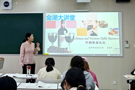 为更好地理解和尊重中西方文化习俗,提升学生的文化素养和跨文化交流能力,近日,公共基础学院教师王艳华为商学院影音之声学生社团开展了一场“中西餐桌礼仪”主题讲座。