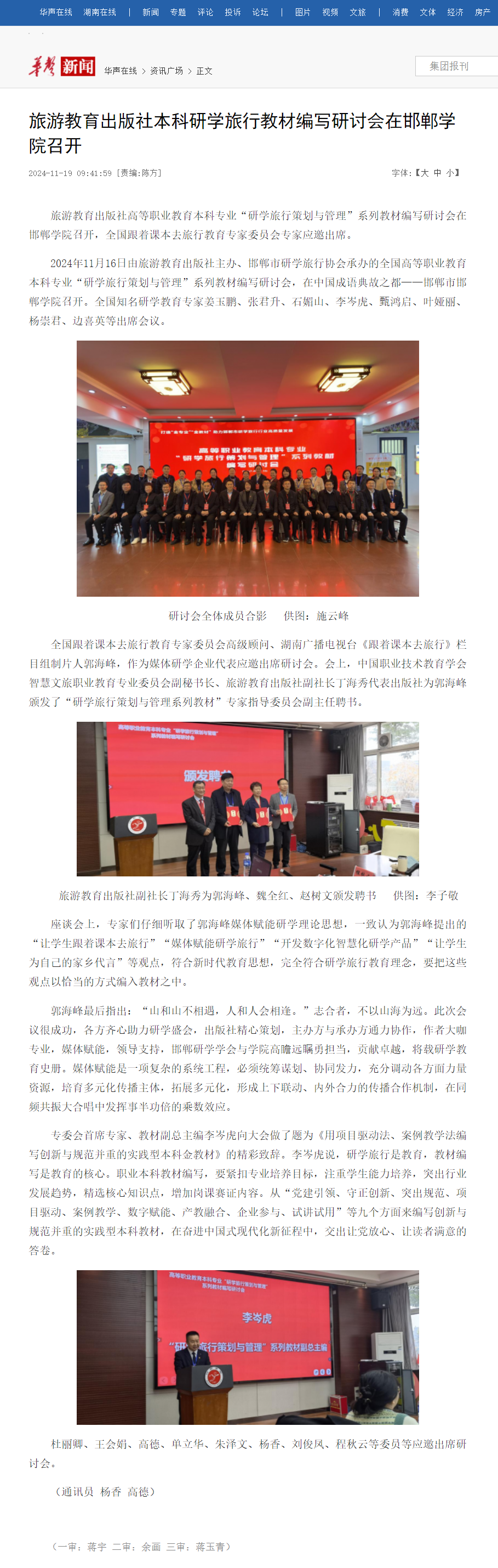 华声在线:旅游教育出版社本科研学旅行教材编写研讨会在邯郸学院召开