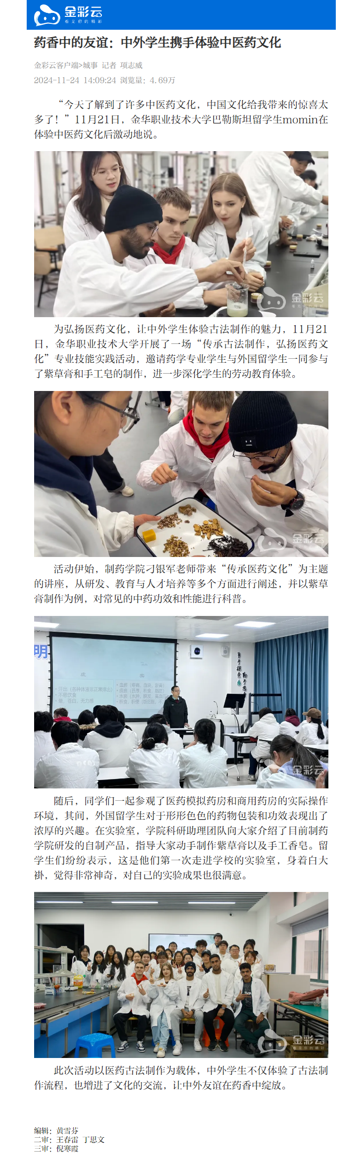 金彩云:药香中的友谊:中外学生携手体验中医药文化