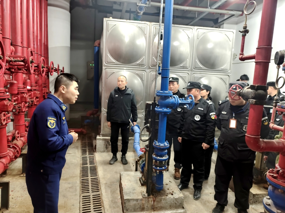 培训中,金希成结合学校实际情况,对消控值班规范化、消防巡查日常化、特殊区域重点化等内容进行详细讲解,对固定消防设施进行实操解说,并重点对自动喷淋系统的工作原理、远程启动水泵、末端试水等进行实地操作和问题解答。