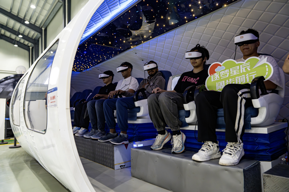 在长征系列火箭VR体验区,参与者佩戴VR头盔,仿佛置身真实发射现场,身临其境地经历了从火箭组装、发射倒计时到轨道对接的完整流程。高精度仿真发射台区域更是成为学生们的“实训场”,大家化身“航天工程师”,分组协作完成从数据监测、安全确认到指令下达的全过程,现场气氛热烈,沉浸感十足。