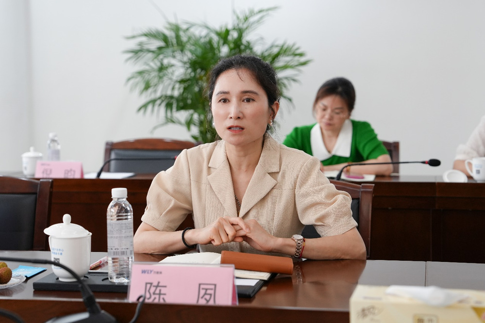 吴月华对学校一行的到访表示热烈欢迎,并全面介绍了万里扬公司的发展概况、主营业务以及人才需求。她指出,公司正处于转型发展的关键阶段,亟需大批人才助力企业发展,与金华本土大学开展合作具备地缘相近、资源互补的天然优势。学校多个重点专业领域与公司产业发展方向高度契合,为双方深化合作奠定了坚实基础。她表示,期待与学校在人才培养方案设计、技术研发等方面扩大合作的广度与深度,为企业发展注入更多创新活力。