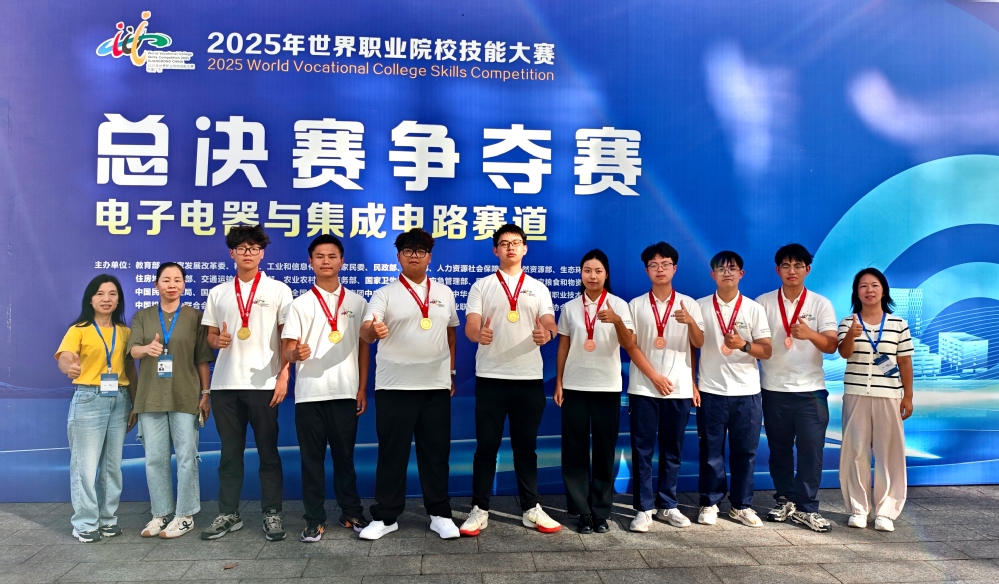 8月31日,2025年世界职业院校技能大赛总决赛争夺赛“电子电路与集成电路”赛道在深圳信息职业技术大学圆满落幕,来自全国各地高职院校的153支队伍齐聚赛场展开角逐。由信息工程学院廖任秀、陈桂兰两位老师指导,陈嘉升、秦中方、王熠辉、吴彬瑜四位同学组成的队伍最终斩获该赛道金奖;由刘子坚、范灵芝两位老师指导,吴翔龙、孙钰翔、周文斌、苏越四位同学组成的参赛团队获得铜奖。
