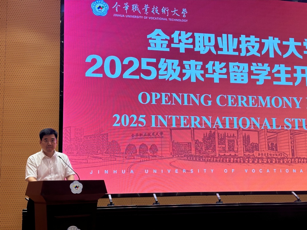 陈海荣在致辞中代表学校对新生表示欢迎。他指出,金华职业技术大学作为拥有百年办学积淀的高等学府,始终致力于为来华留学生提供优质教育资源与广阔发展平台。他勉励新生既要扎实掌握汉语与专业知识,更要深入体验中国文化,成为联通世界与中国的友好使者。