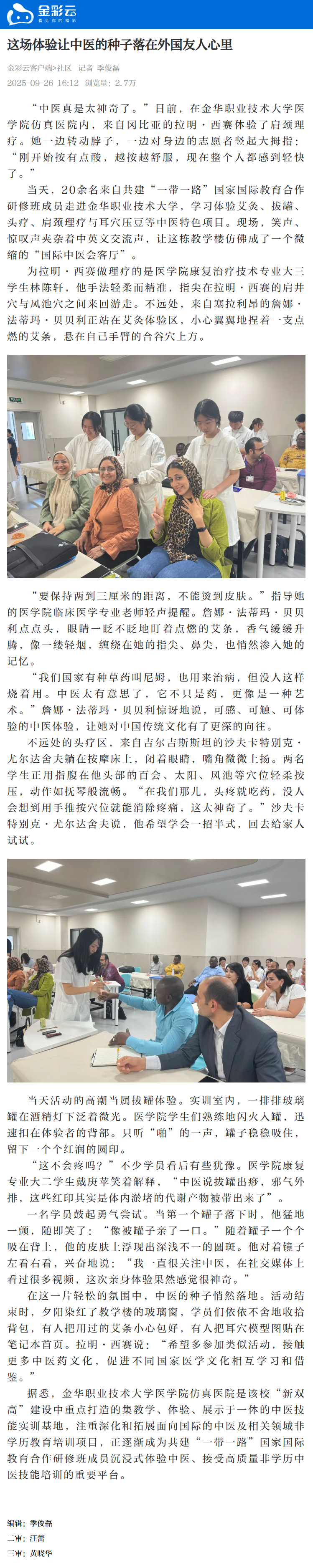 金彩云客户端:这场体验让中医的种子落在外国友人心里