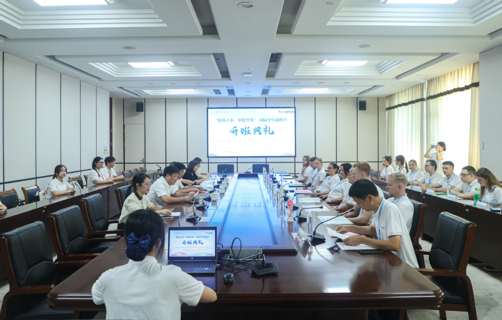 陈海荣代表学校对远道而来的德国FUU萨克森公益教育集团师生表示热烈欢迎。他简要介绍了学校的办学特色以及在对外交流与合作领域的工作,他表示,本次研修营旨在为中德师生构建一个深度交流与互学互鉴的平台,期望德国友人能借此机会,亲身感受中医药的独特魅力,沉浸式体验中华优秀传统文化的博大精深,并直观了解中国经济社会发展的强劲活力。