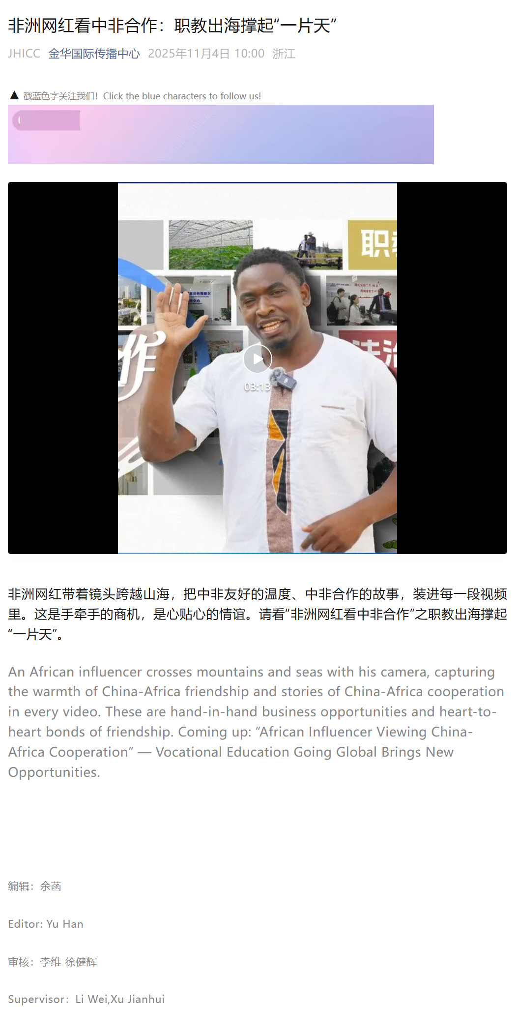 金华国际传播中心:非洲网红看中非合作:职教出海撑起“一片天”