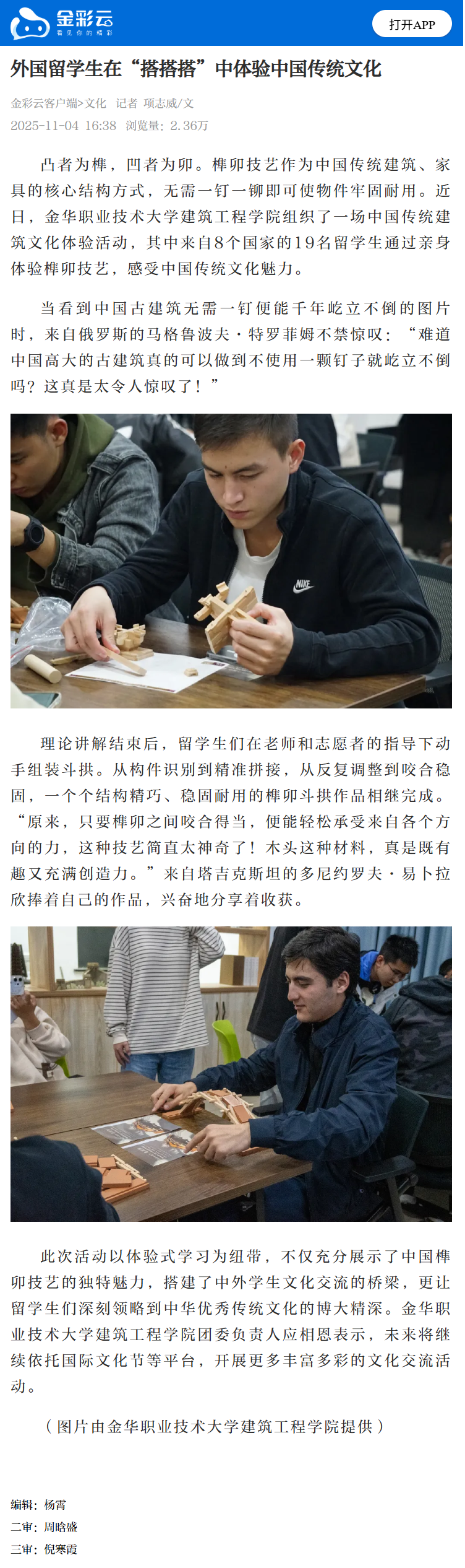 金彩云客户端:外国留学生在“搭搭搭”中体验中国传统文化