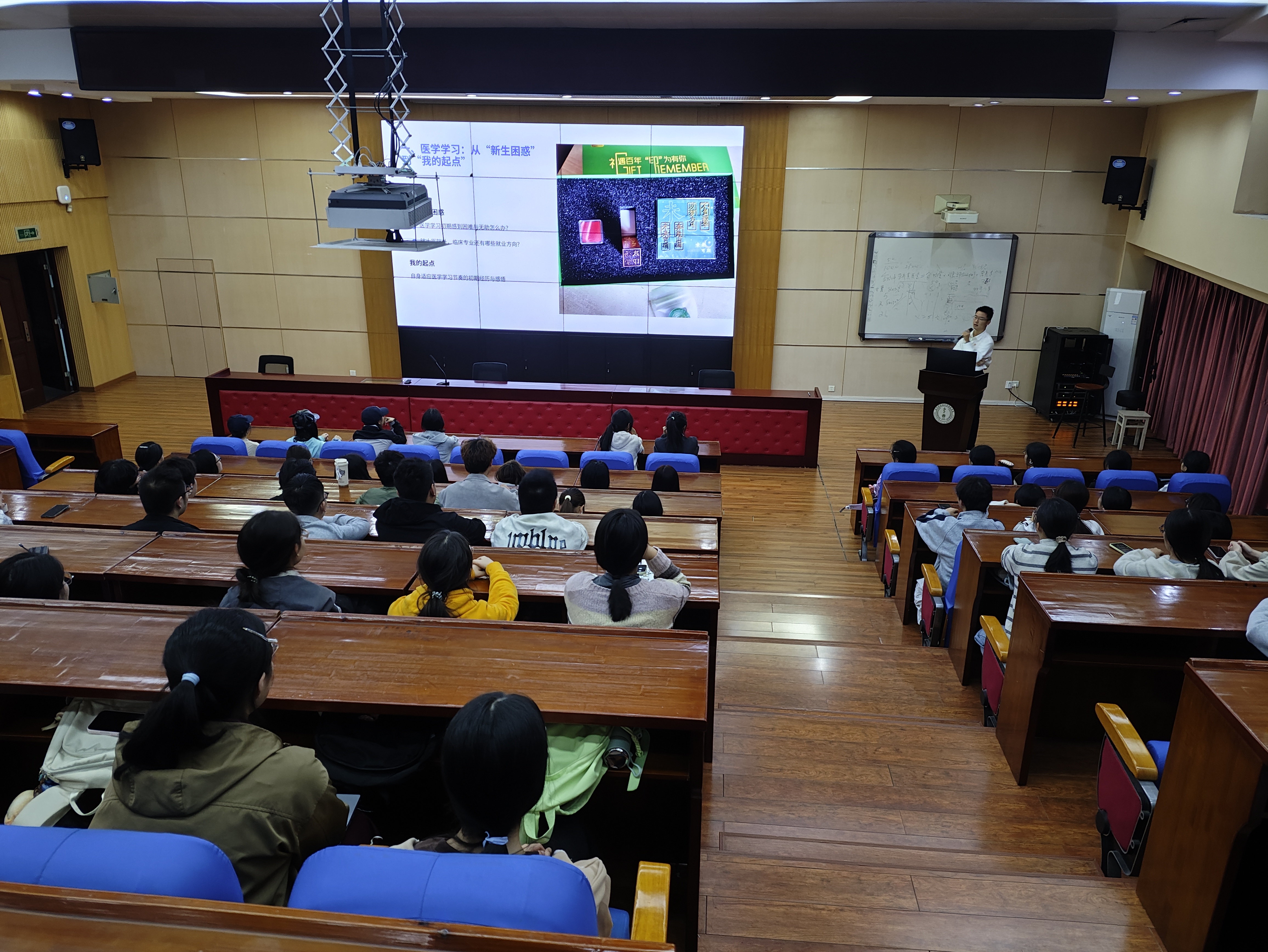 为加强学风建设,增强医学生的学医信心,近日,医学院邀请2025世界职业院校技能大赛争夺赛医学技术赛道金奖获得者、武义县桐琴镇东干中心卫生院医师、临床医学专业2025届毕业生汤学政为临床医学专业学生授课,近百位大一新生参加了此次交流活动。